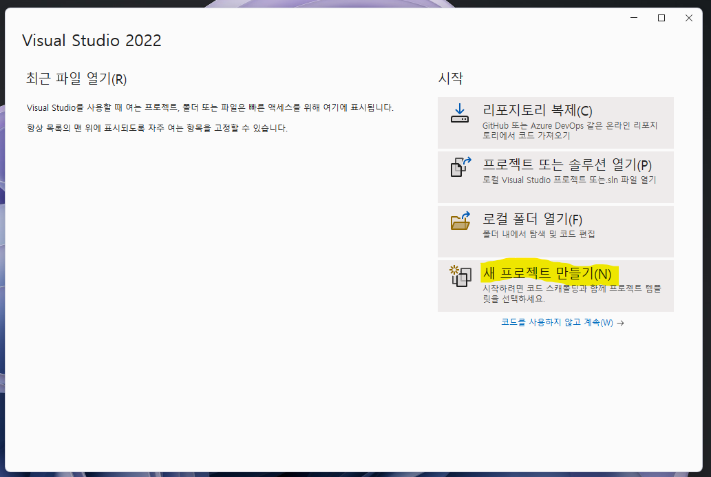 먼저 프로젝트를 생성합니다!
