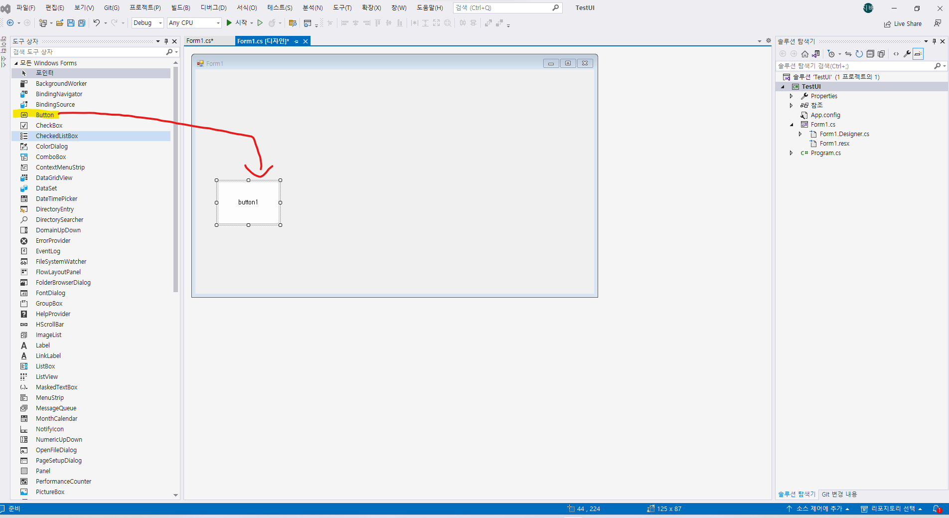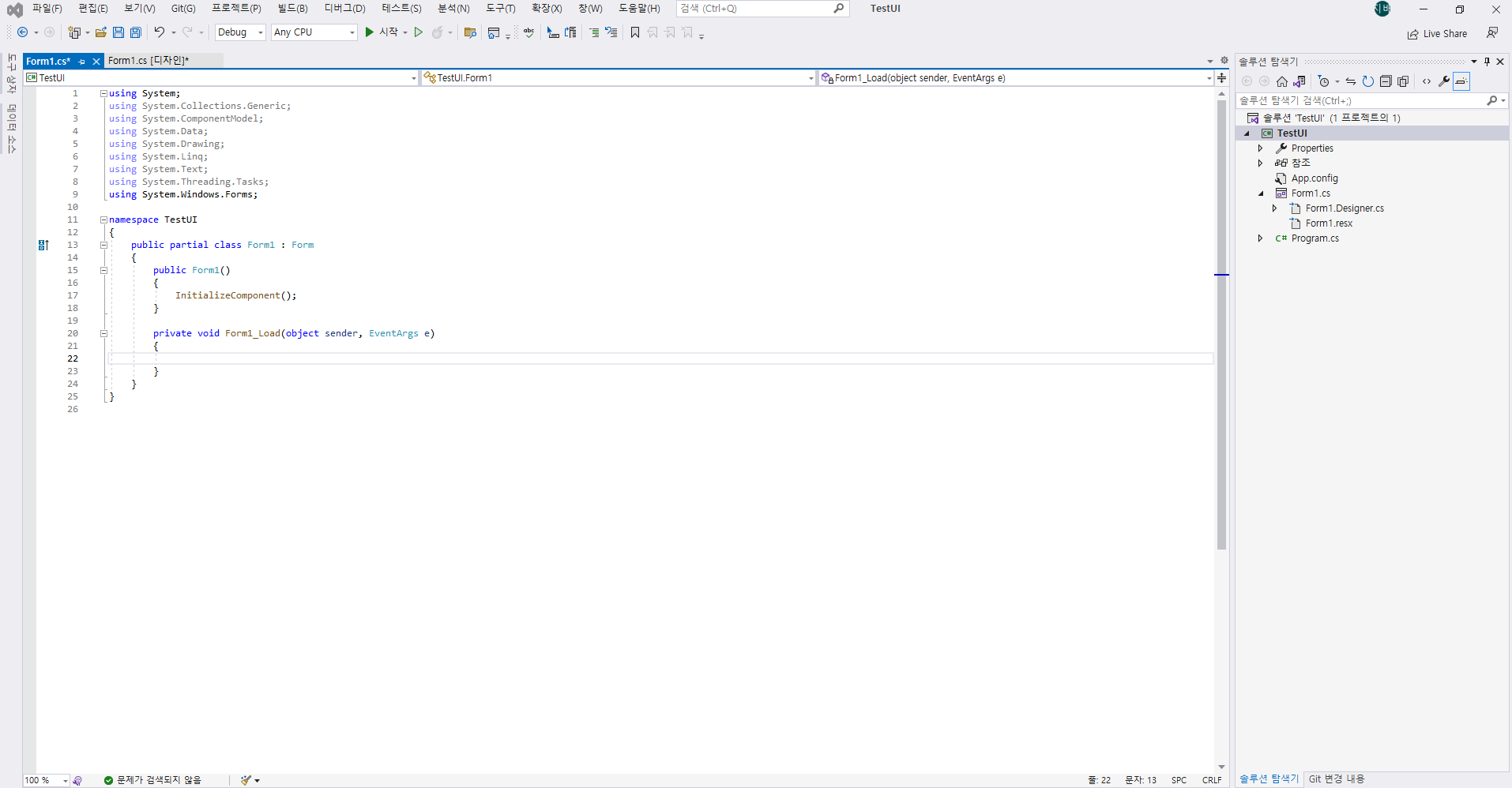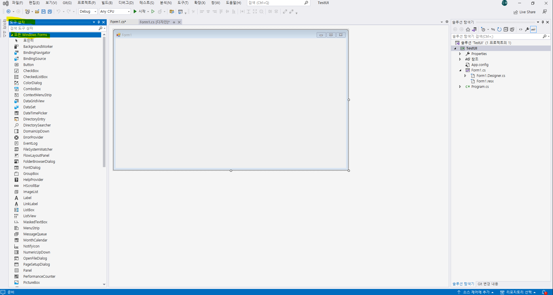 오늘은 이전 포스트에 구성한 개발환경에서 간단한 Winform을 통한 윈도우 어플리케이션 UI를 만들어보겠습니다~!