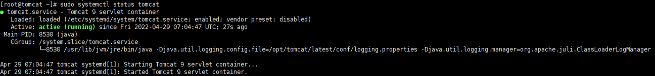 sudo systemctl status tomcat