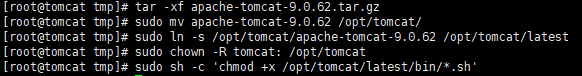sudo ln -s /opt/tomcat/apache-tomcat-9.0.64 /opt/tomcat/latest