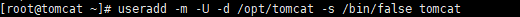 useradd -m -U -d /opt/tomcat -s /bin/false tomcat