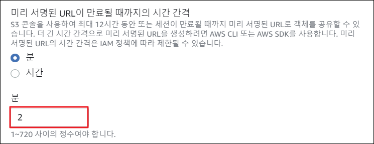 aws s3 presign s3://버킷명/객체명 --region ap-northeast-2 --expires-in 60