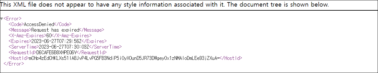 일정 시간이 지나서 URL이 만료가 되면 접근이 불가능해지는거죠.