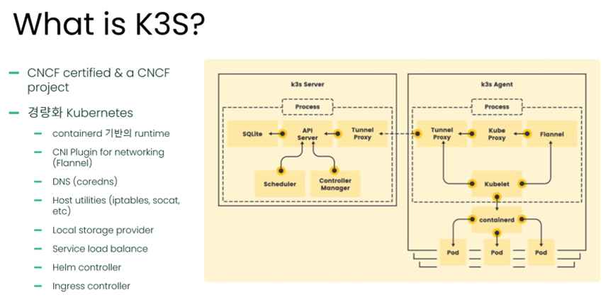 K3S 버전은 경량화 버전으로, 엣지 환경이나 IoT 운영 환경에 적합하며 100M도 안되는 용량으로 쿠버네티스 운영 환경에 필수적인 기능을 모두 포함하고 있습니다.
