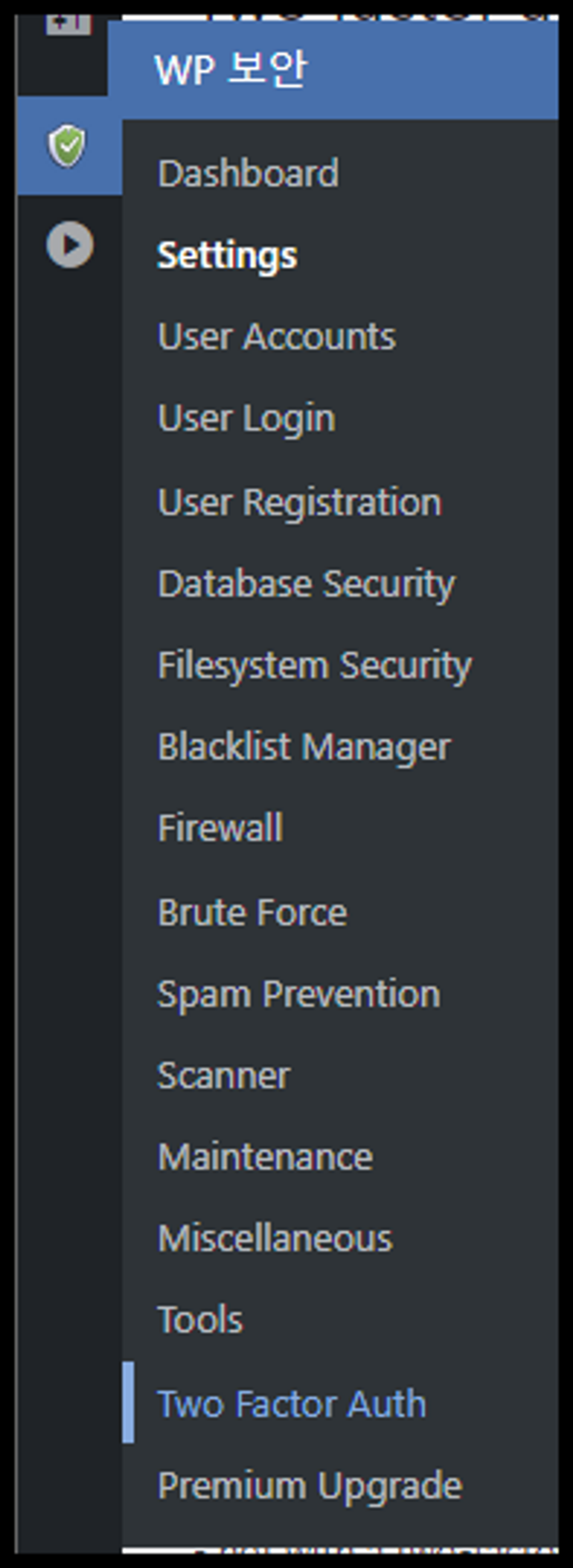 WP 보안 > Settings를 선택합니다.
