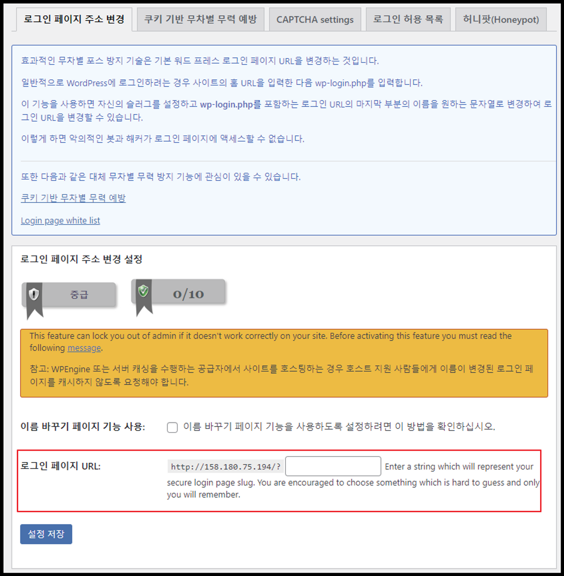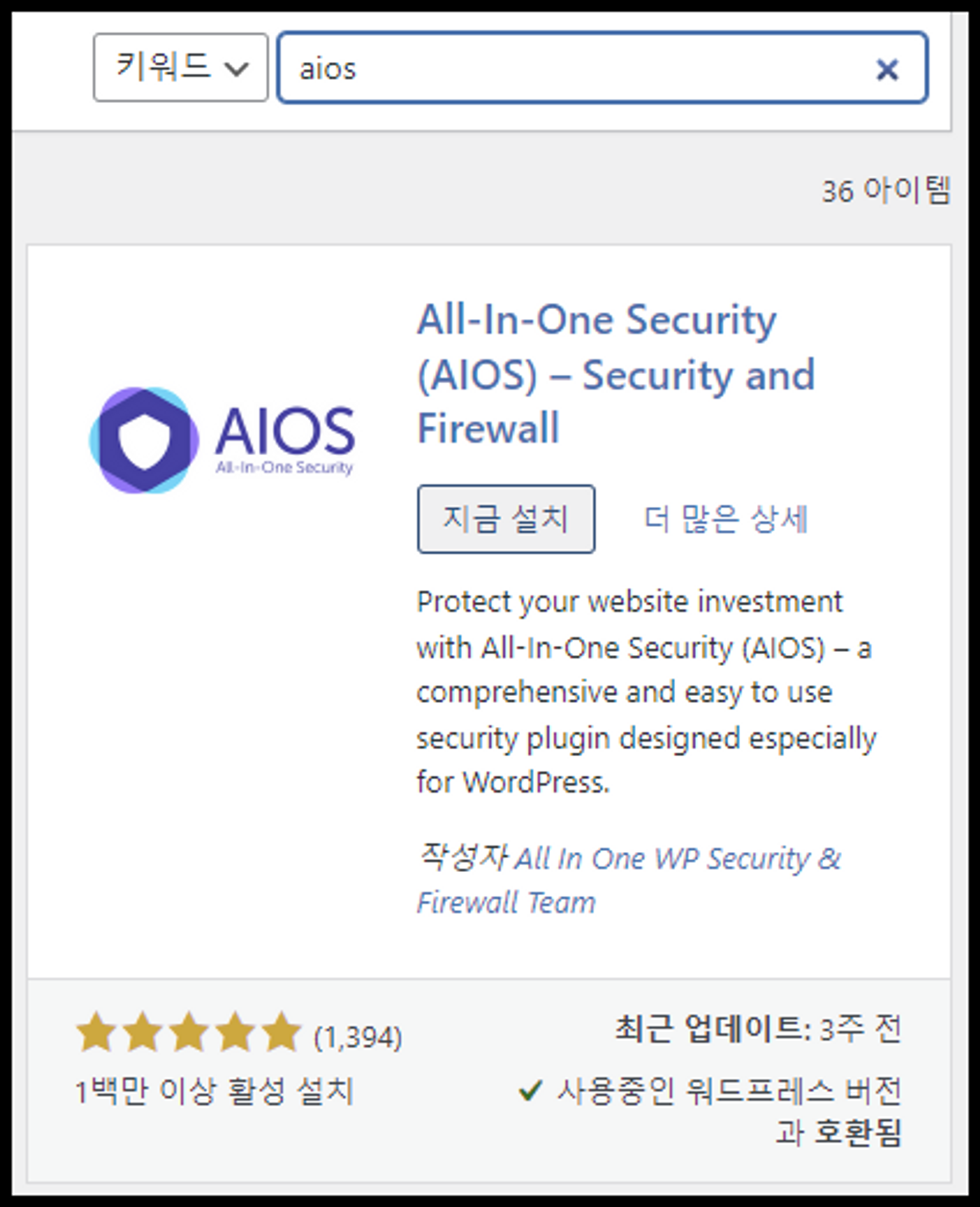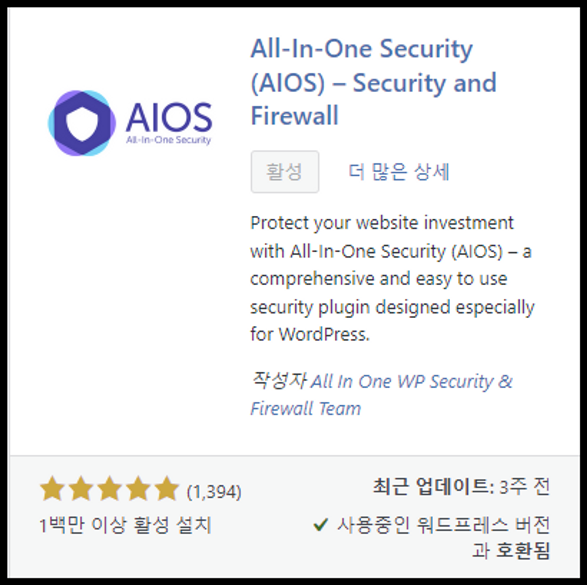 ( All-In-One Security (AIOS) – Security and Firewall 플러그인 )