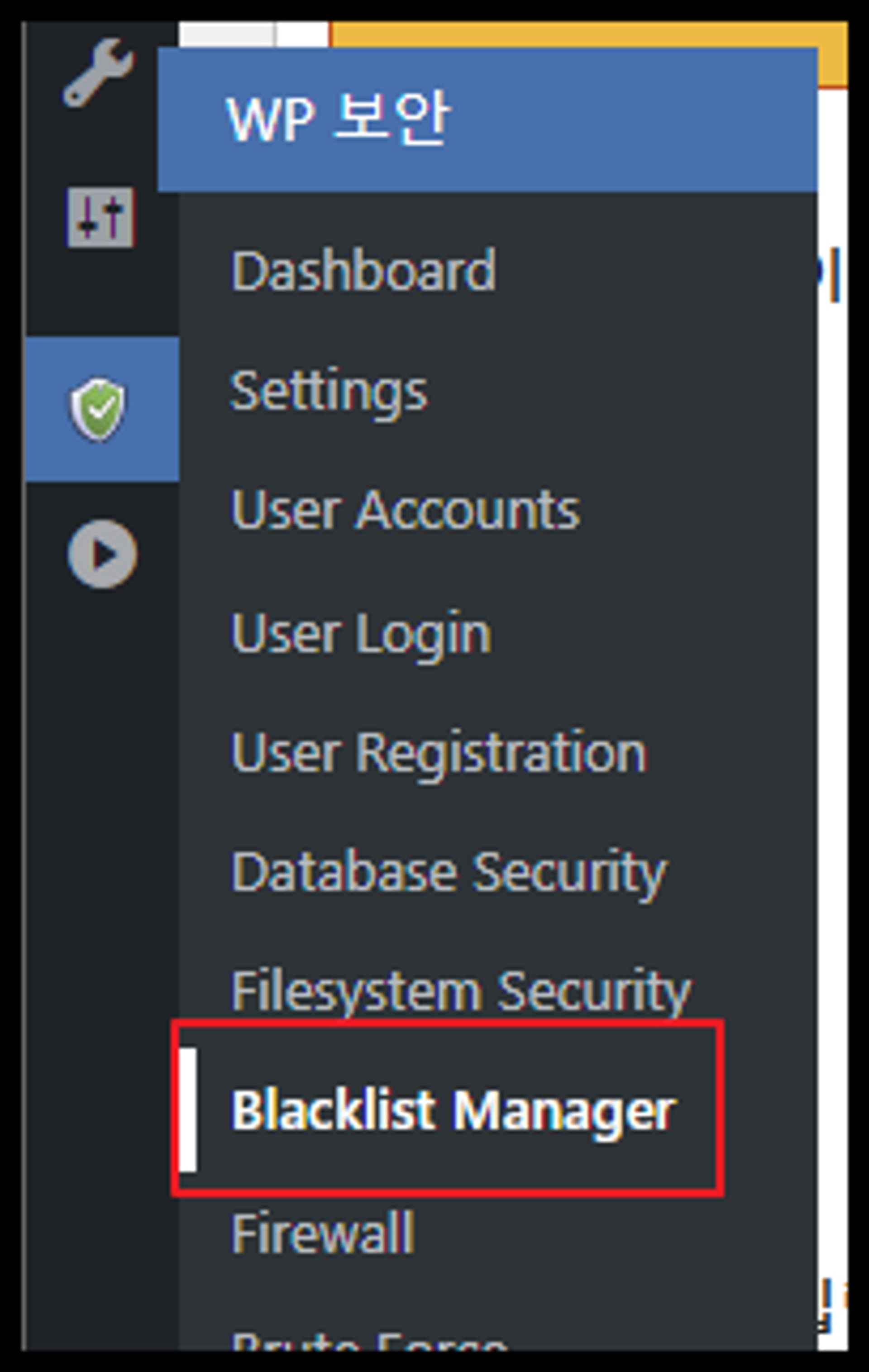 WP 보안에 Blacklist Manager을 선택합니다.