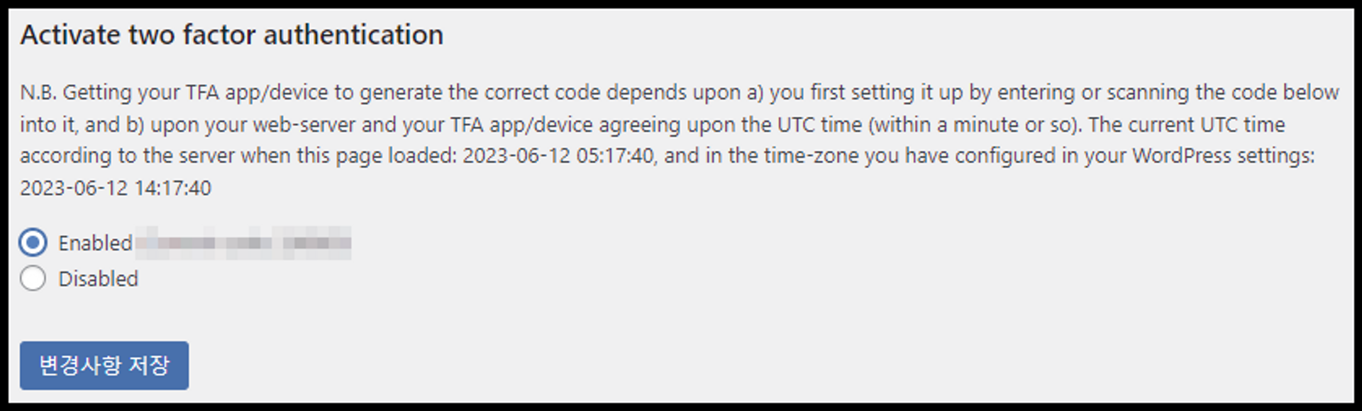 WP 보안 > Two Factor Auth를 선택합니다.