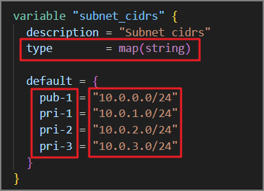 💡 map은 terraform 에서 사용되는 변수 타입중 하나라고 생각하시면 쉽습니다.