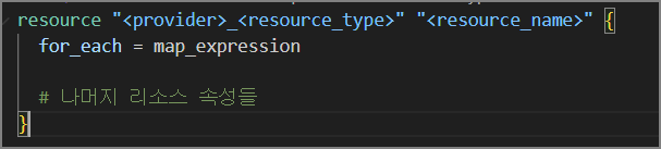 for_each 메타인수는 Terraform의 resource 블록 내에서 반복문을 사용할 수 있게 해주는 기능입니다!