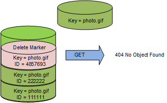 - 가장 최신 버전이 삭제마커일 때 GET 요청을 수행하면 404 오류가 반환됩니다.