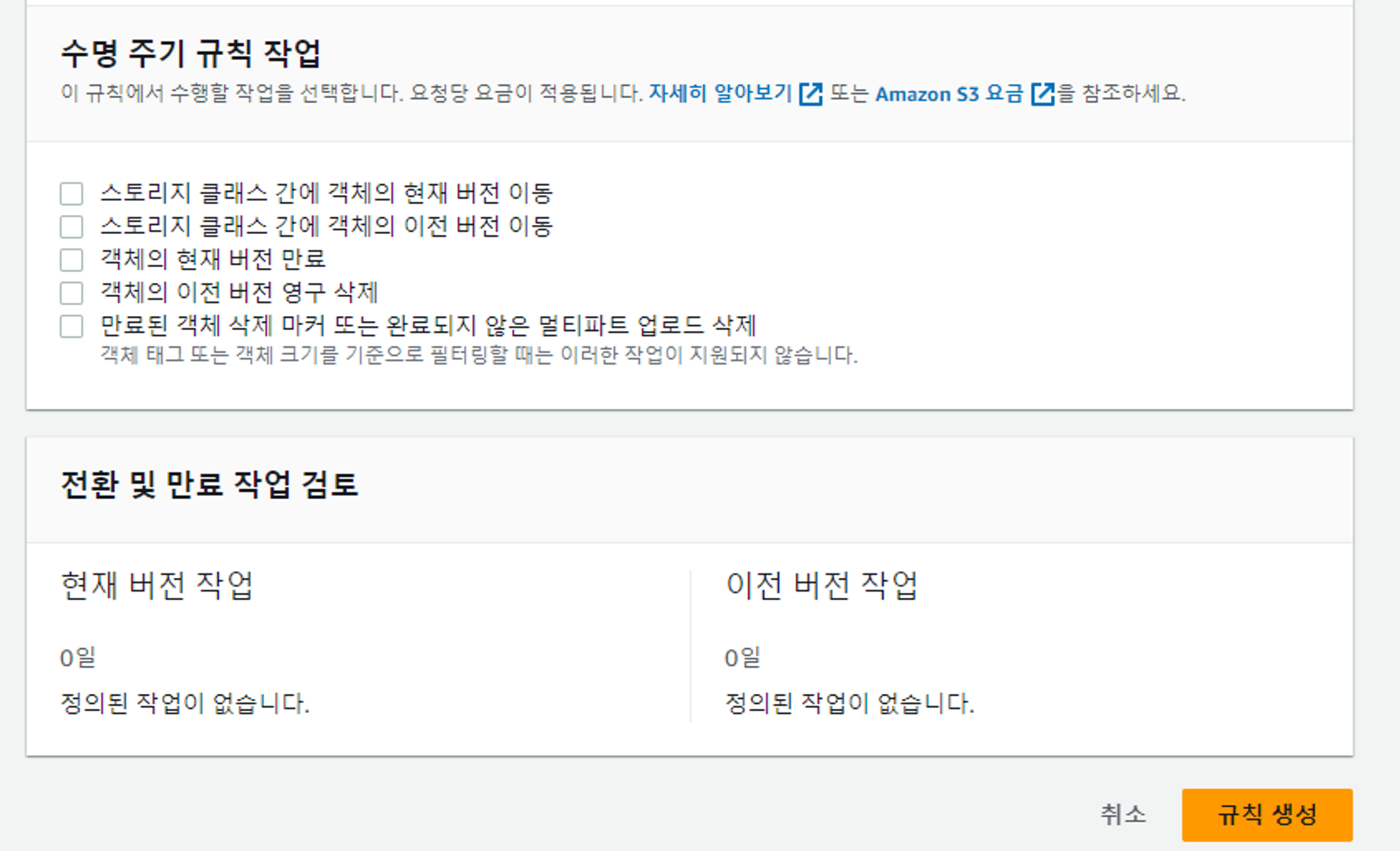 수명 주기 규칙 생성에 필요한 설정값들을 확인해보겠습니다.