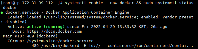 systemctl enable --now docker && sudo systemctl status docker