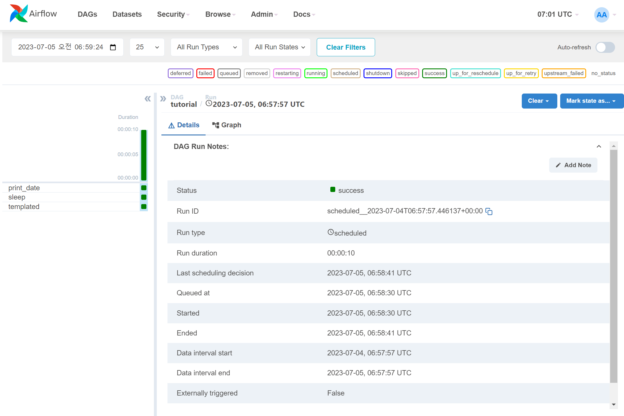 Tutorial dag를 기준으로 Task의 작업상태에 대해 먼저 설명드리겠습니다!!