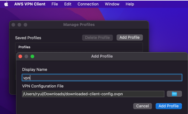 brew install --cask aws-vpn-client # 맥 패키지 관리자로 설치할 경우
