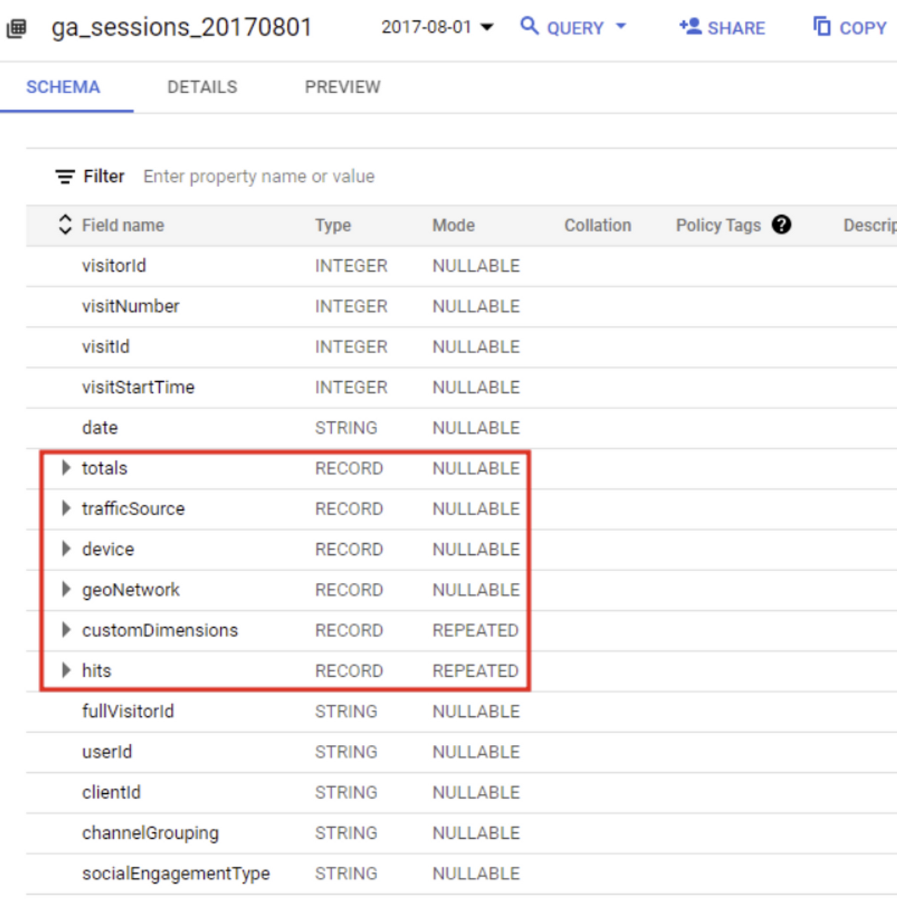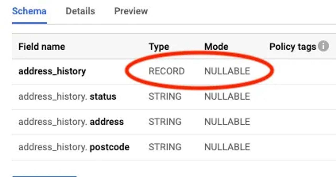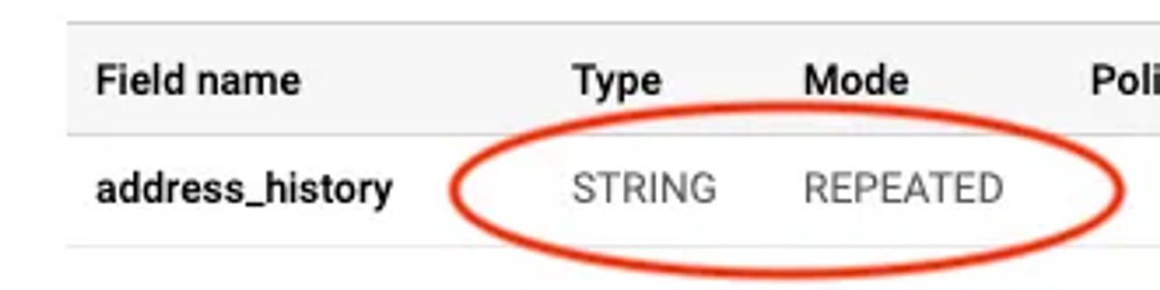 - address_history 스키마를 보게 되면 REPEATED의 형태를 가지는 것을 볼 수 있습니다.