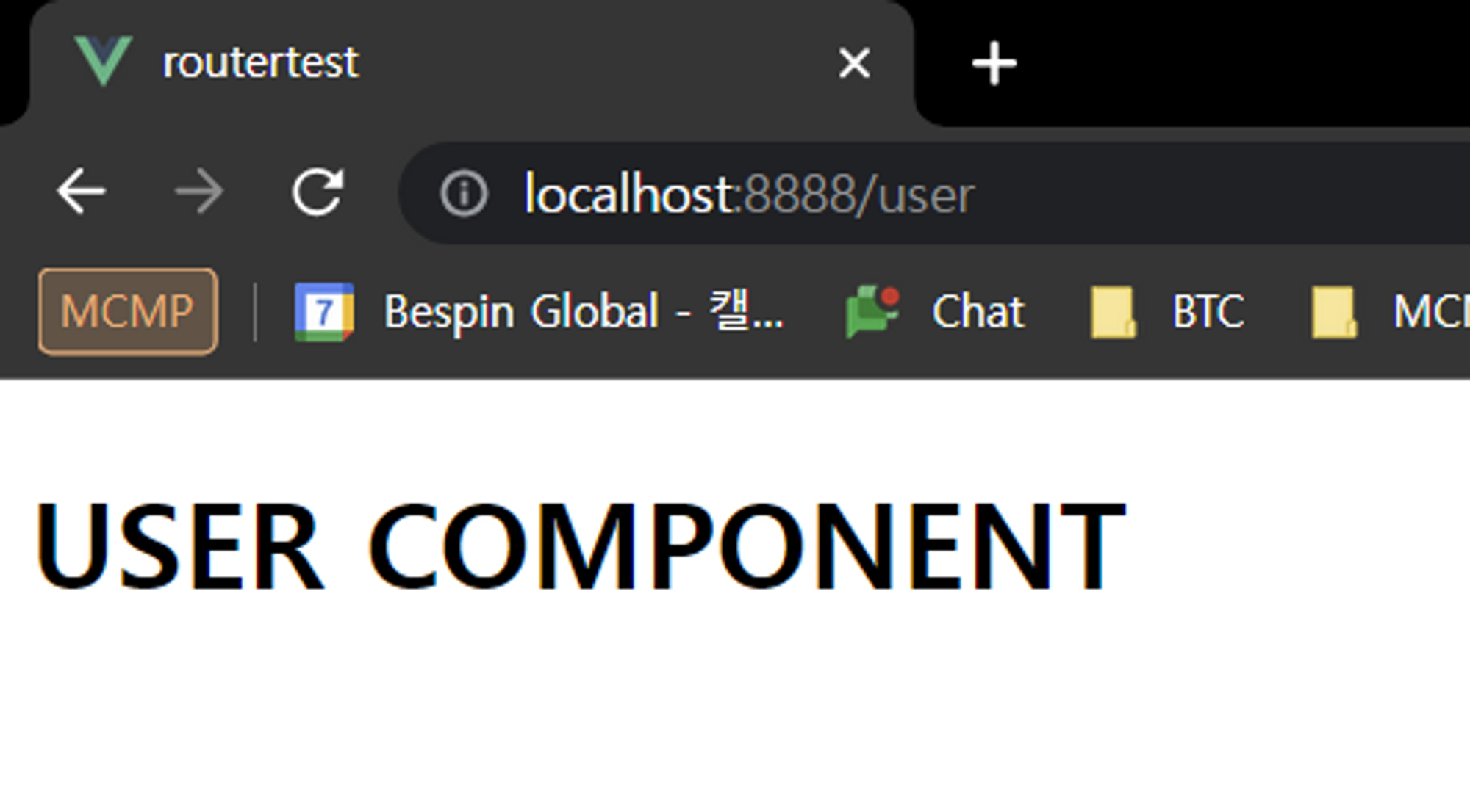 이 후에 경로를 ‘/’ 로 이동하면 Home 컴포넌트가, ‘/user’ 로 이동하면 User 컴포넌트가 <router-view> 내에 렌더링 되어 화면상에 나타나는 것을 확인할 수 있습니다!