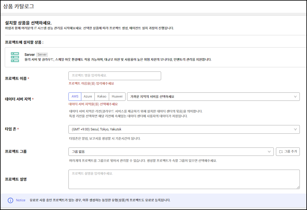 설치 안내 > 2.와탭 리포지토리 추가 / 3.와탭 서버 모니터링 패키지 설치 / 4.서버 모니터링 시작하기 순서대로 진행(필수 사항)