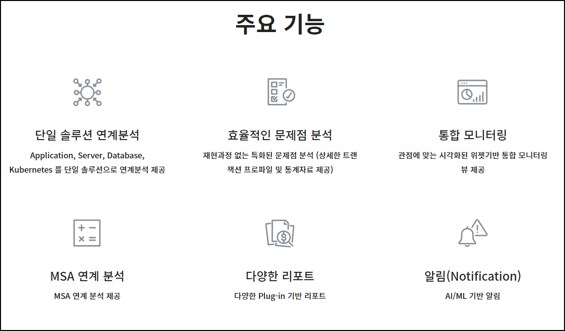 서버, DB 및 쿠버네티스 기반 컨테이너를 하나로 통합 모니터링할 수 있습니다.