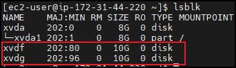 10G 볼륨 2개가 인스턴스에 연결된 것을 확인할 수 있습니다.