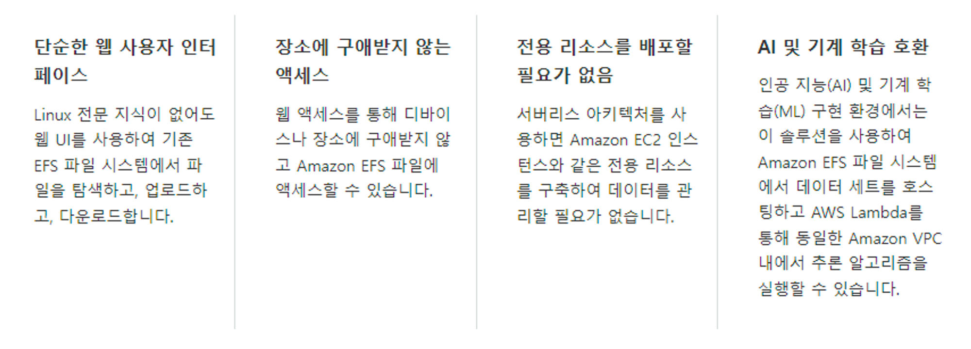 아래와 같은 다양한 기능을 통해 EFS를 효율적으로 쓸 수 있도록 지원해주고 있어요.