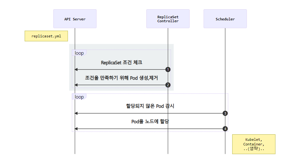 ReplicaSet은 ReplicaSet Controller가 관리하고 Pod의 할당은 여전히 Scheduler가 관리합니다. 각자 맡은 역할을 충실히 수행하는 모습이 보기 좋습니다.