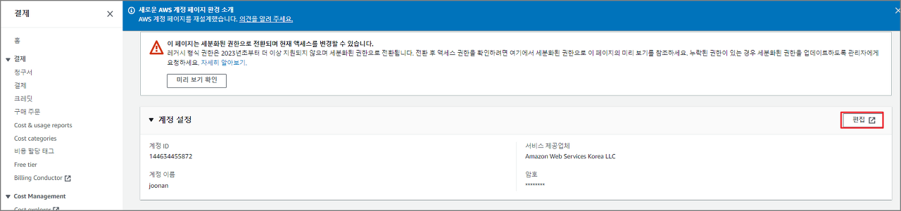 2. 계정 설정 부분의 "편집" 클릭