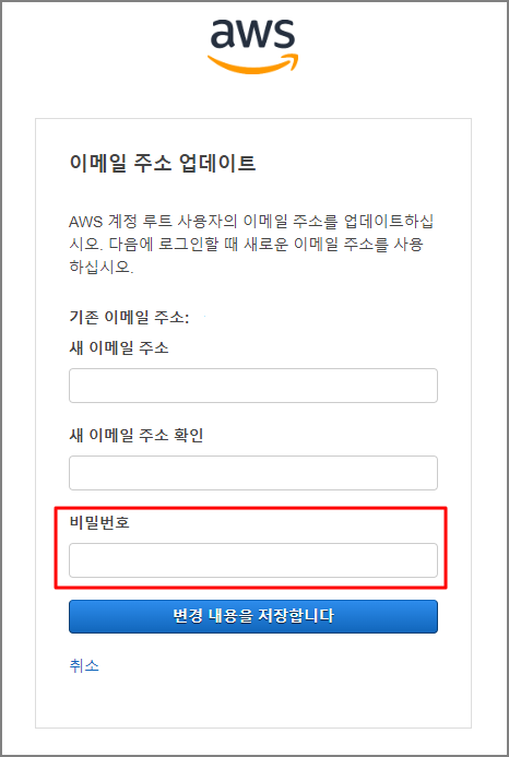 4. 해당부분에 새 이메일 (변경하고자 하는 이메일)을 넣고 기존 비밀번호 입력 후 "변경내용을 저장합니다" 클릭