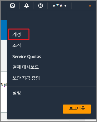 1. ROOT( sg.herit@gmail.com ) 계정으로 로그인 후 우측 상단의 계정이름 클릭 -> "계정" 클릭