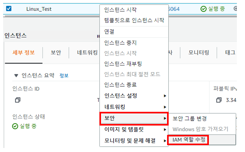 EC2 우클릭 - 보안 - IAM 역할 수정