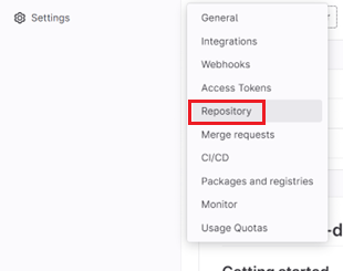 2. Settings 에 Repository 클릭 - [ 기존 Gitlab Repository 에서 작업 ]