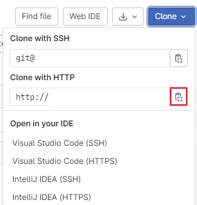 4. 1번에서 생성한 빈 프로젝트의 Clone with HTTP URL복사 - [ mirroring 될 새로운 gitlab 에서 작업 ]