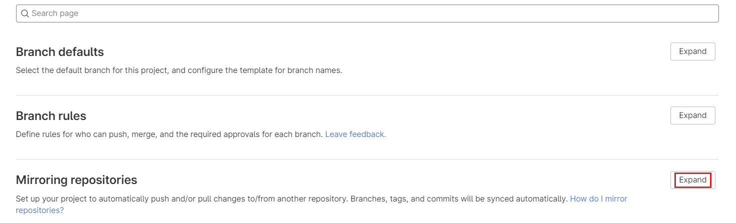 3.Mirroring repositories 에 Expand 클릭 - [ 기존 Gitlab Repository 에서 작업 ]