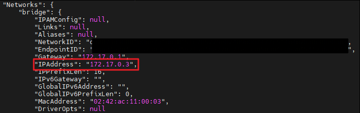 우선 해당 명령어로 was의 IP를 확인합니다. IP는 Networks 부분의 IPAddress를 확인하면 됩니다.