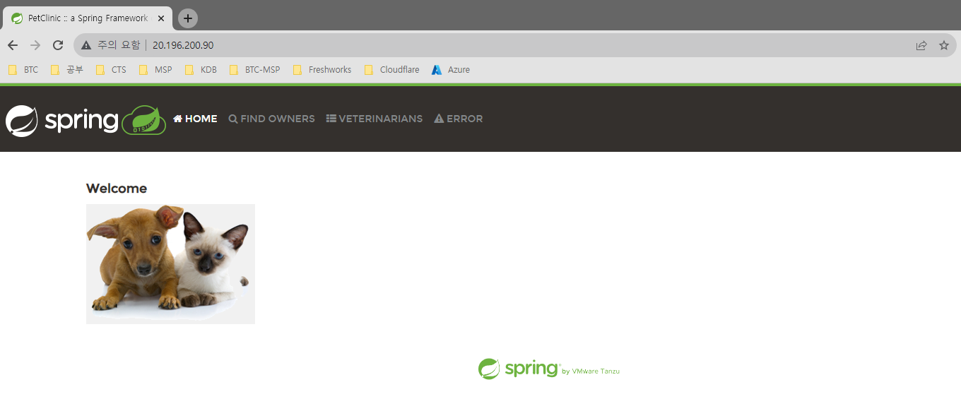 수정 후 docker를 재시작하면 VM의 공인 IP로 접속했을 때 해당 페이지를 확인할 수 있습니다~!