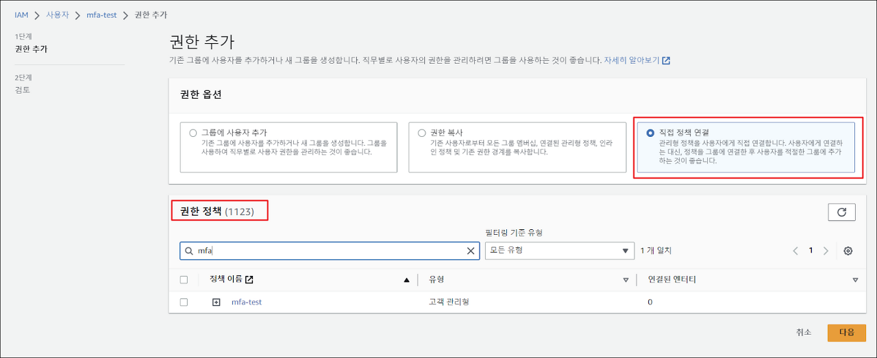 여기까지 MFA 강제 적용을 위한 IAM 정책을 생성하여,