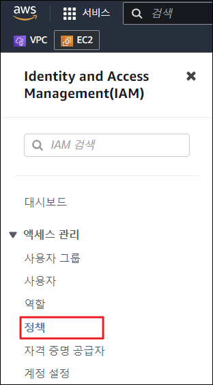 IAM > 액세스 관리 > 정책 > 정책 생성 > JSON(아래 링크에서 복사)