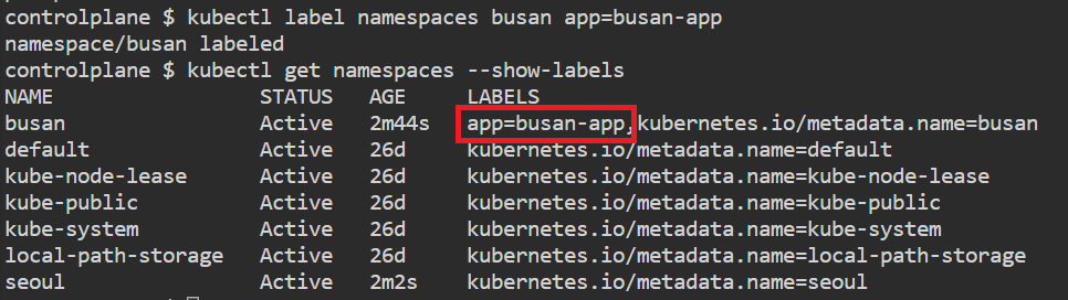 Busan 네임스페이스에 app=Busan-app 이라고 설정을 해 보아요