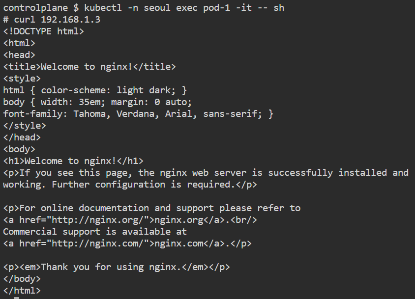 Pod-1에서 접속한 후 Pod-2로의 curl 접속은 된답니다.