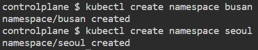 먼저 Busan과 Seoul의 네임스페이스를 생성할거예요