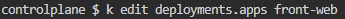 front-web 이라는 이름의 디플로이먼트(Deployment)의 설정을 수정 합니다.