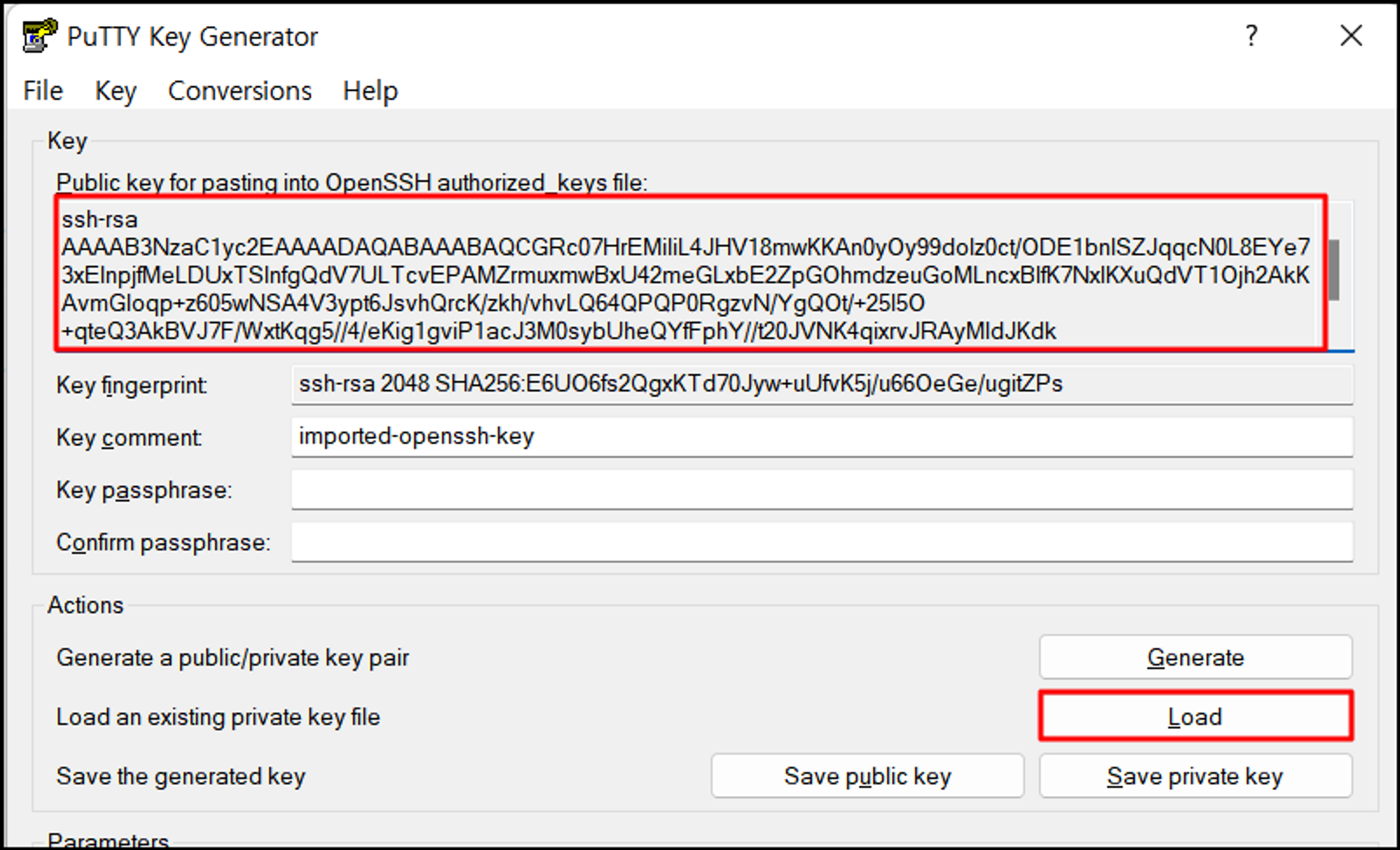 - ssh-rsa AAAAB...PUOnroWwJaSRSmux imported-openssh-key # 퍼블릭 키