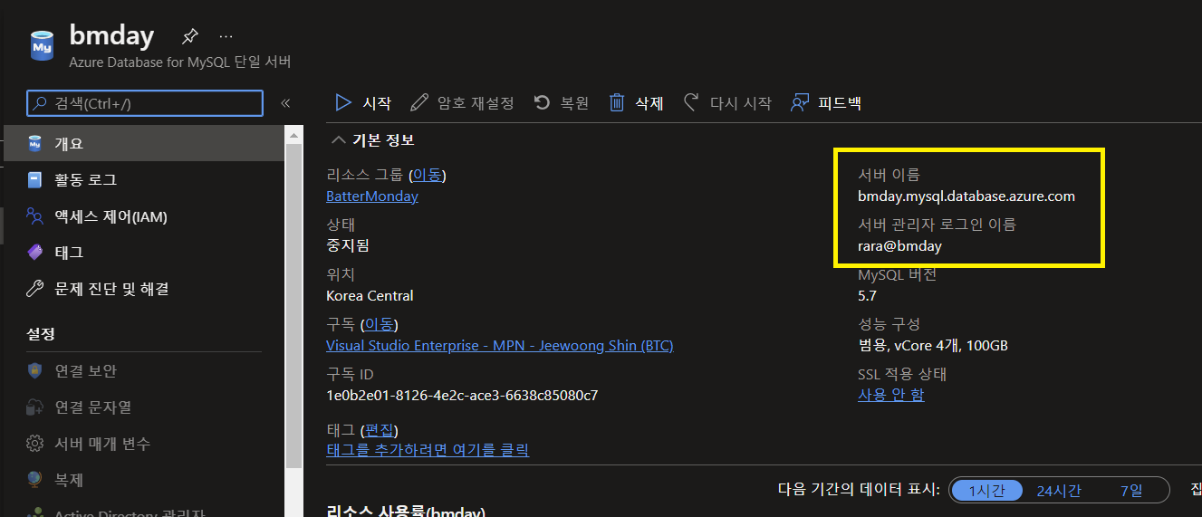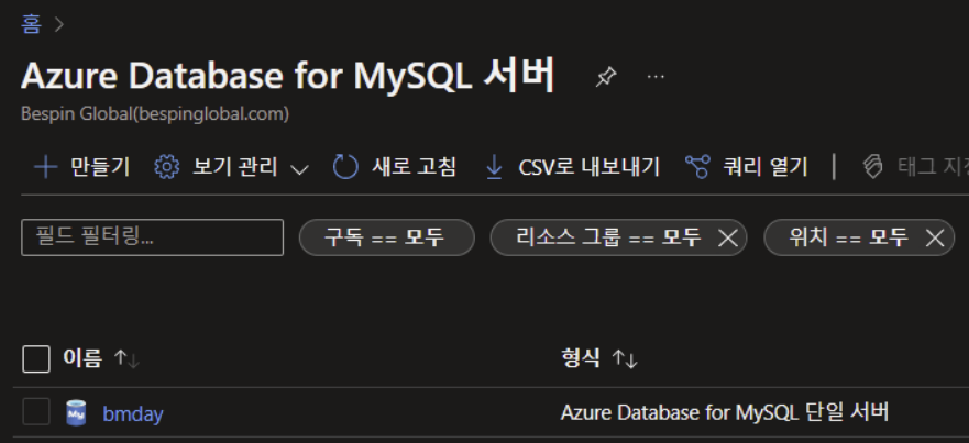 서버 자체에 mysql을 설치하여 사용할 수 도 있지만 Azure PaaS 서비스인 Azure database for mysql 서비스를 활용하여 진행해 보겠습니다.