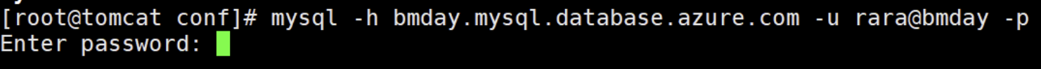 mysql -h bmday.mysql.database.azure.com -u rara@bmday -p