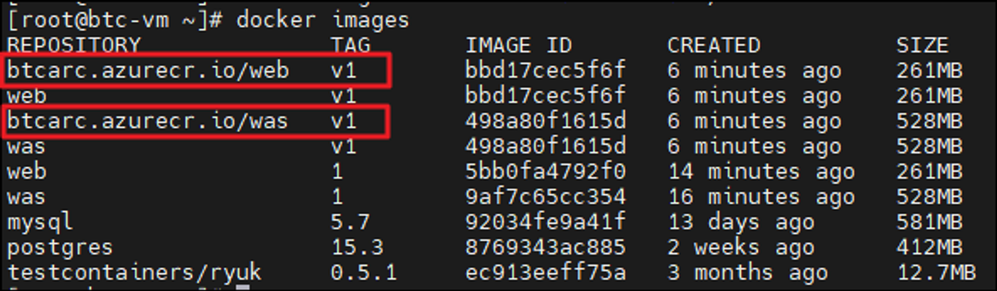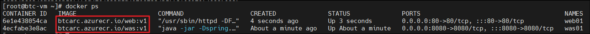docker push btcarc.azurecr.io/was:v1