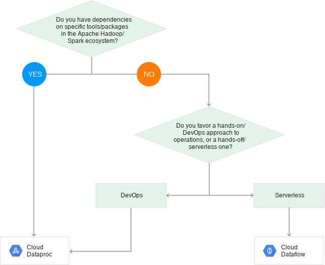 Cloud Dataproc과 Cloud Dataflow의 선택 flow차트