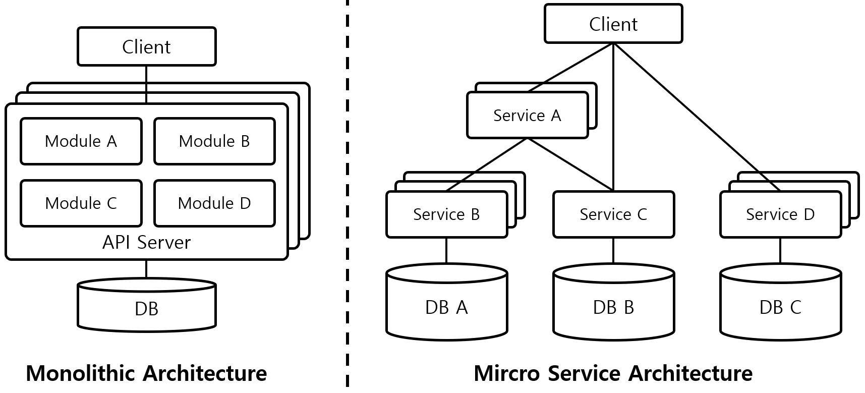 모노리식 아키텍처는 전체 시스템이 한 개의 애플리케이션으로 구성된 반면, 마이크로서비스는 작은 기능 단위로 나누어진 독립적인 서비스로 구성됩니다. 이 구조는 다음과 같은 이점을 제공합니다:
