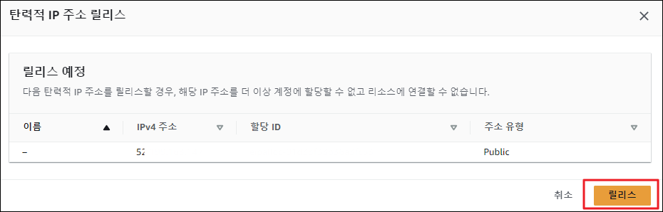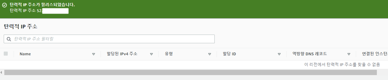 1. EIP를 Release 한다. 완전히 지워진 것을 볼 수 있다.