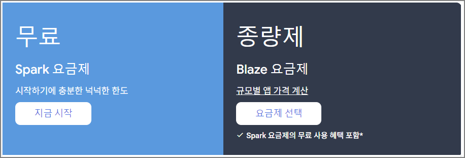 Firebase 는 소규모 스타트업에서 사용하면 좋은 플랫폼으로 알려져 있는데요, 그 이유는 가격챙정 면에서도 스타트업에게 부담이 되지 않기 때문입니다. 이미지를 누르면 자세한 요금을 확인하실 수 있습니다.