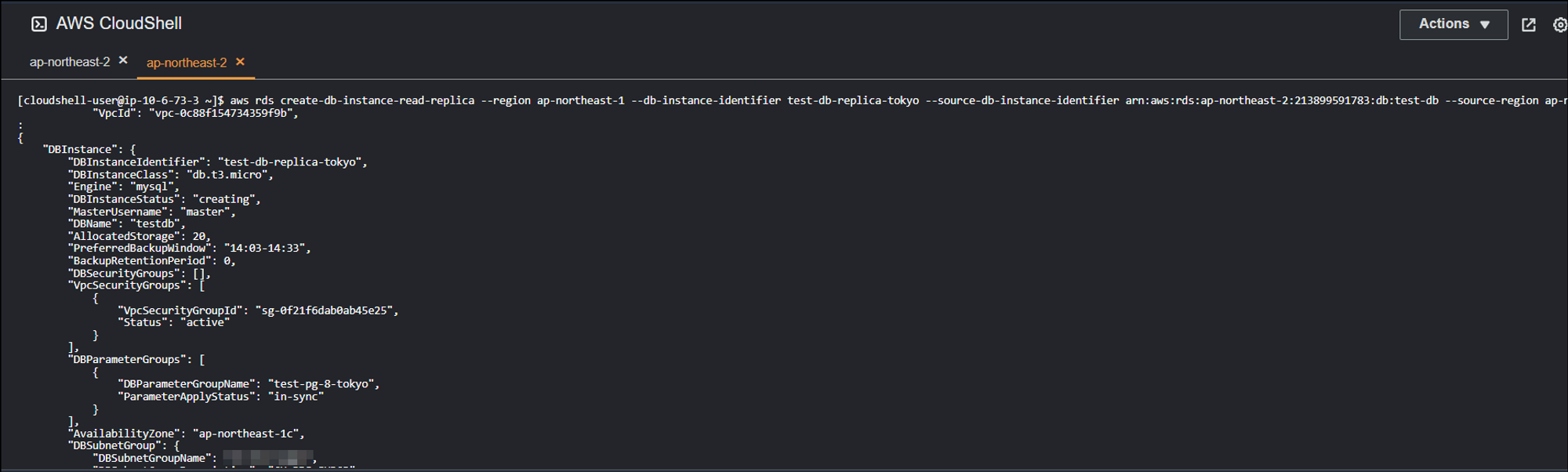 AWS CLI를 사용해서 도쿄 리전에 복제본을 생성해 줍니다.